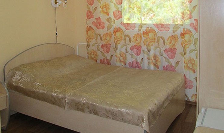 В номере: зеркало, кровать полутороспальная, прикроватная тумбочка, стол, стулья, шкаф, мини-холодильник, телевизор, чайный набор посуды, электрочайник