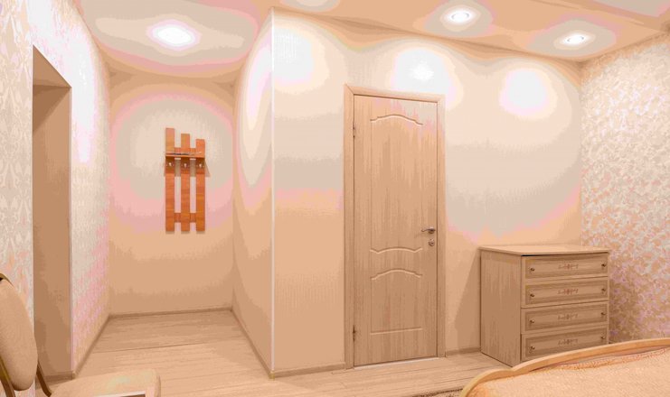 В номере: вешалка, диван раскладной, зеркало, кровать двуспальная, прикроватные тумбочки, стол, стулья, шкаф, телевизор, телефон, холодильник, чайный набор посуды, электрочайник